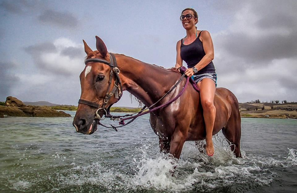 – Scarlet (1.52m), an Arabian mare, born in the USA but lived for a long time on Curacao, in the arena perfect for dressage and jumping lessons, for the more experienced rider on trail rides.