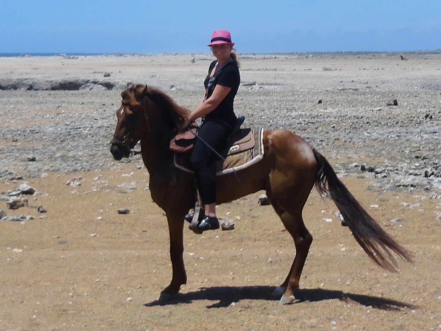 – Blondy Studebaker (1.43m), a crossbred Paso Fino mare, born on Curacao with the gaits of a Paso Fino, the best trail horse.