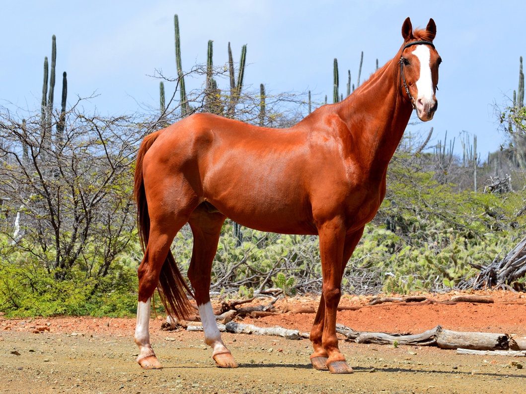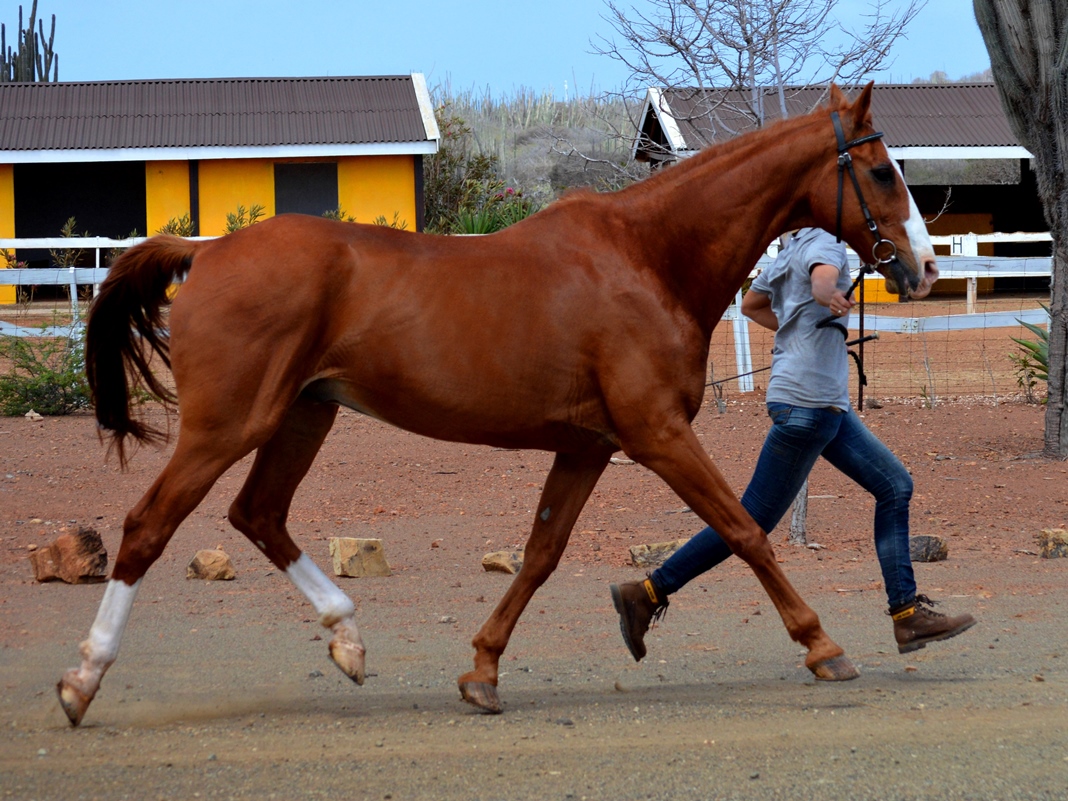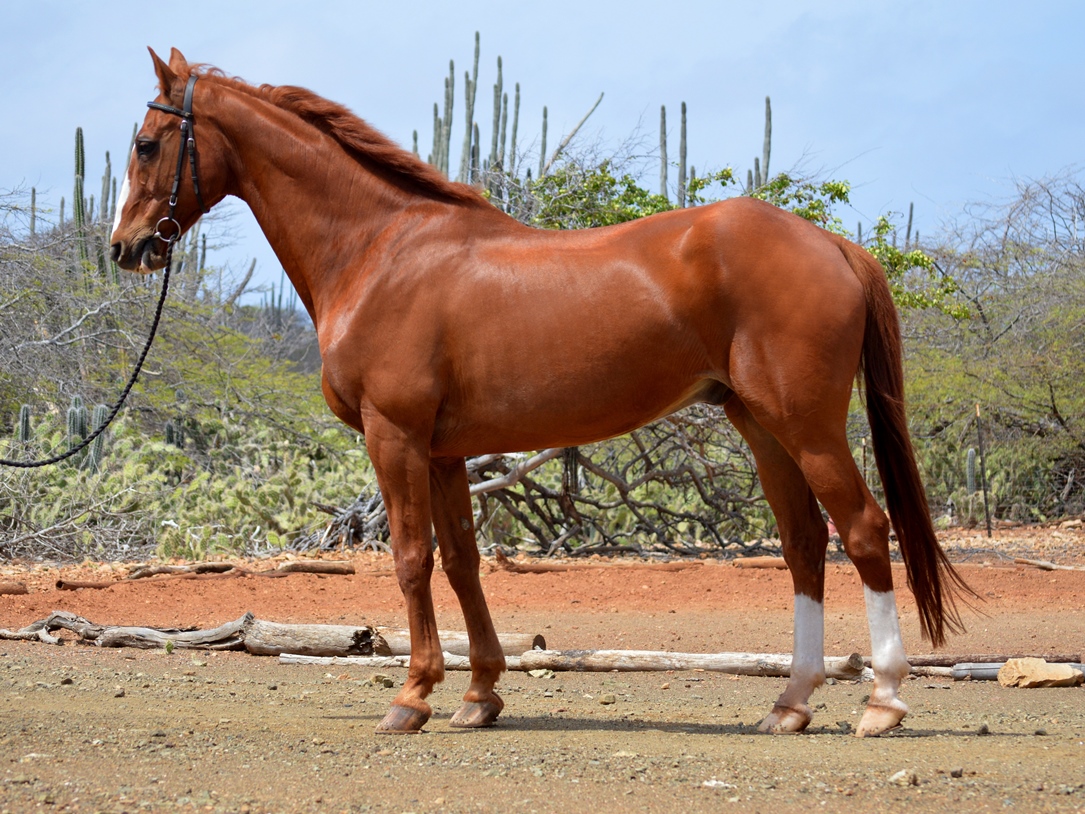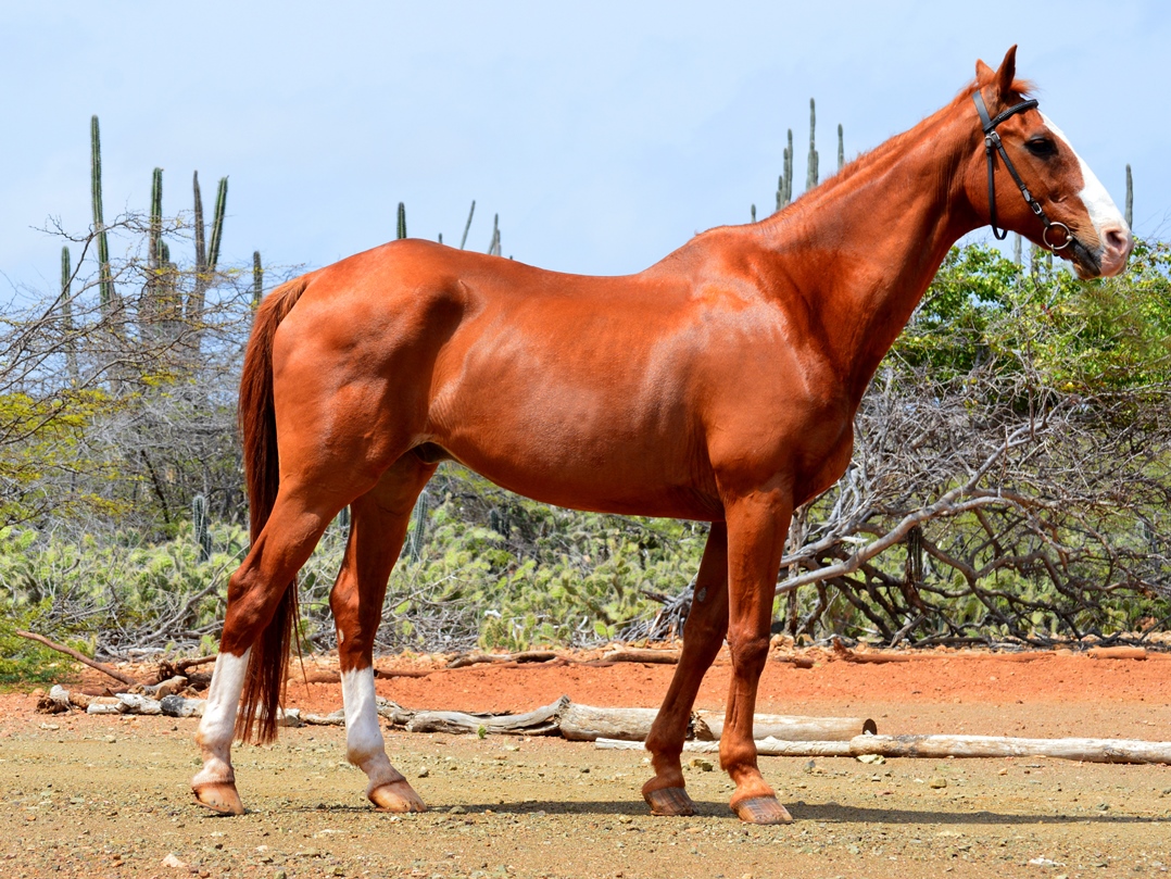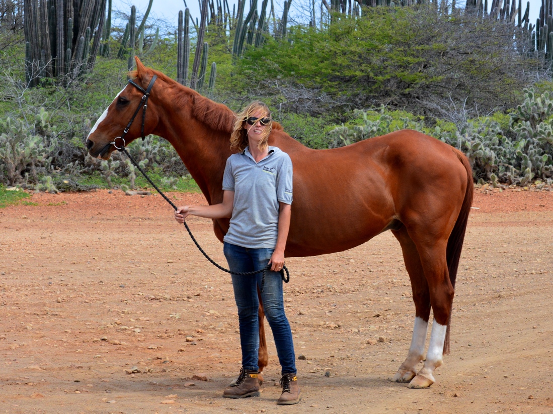 On Bonaire there are several kinds of horses, but he is the tallest! We are proud at our (almost) 25 years old Royal Dutch Sporthorse KWPN called ‘Il Tigretto’ of Rex Magna xx. He tall and strong, his height is 1.72 meter! He loves to swim and is really excited about trail riding, but he is also a great teacher for our youngest riders!