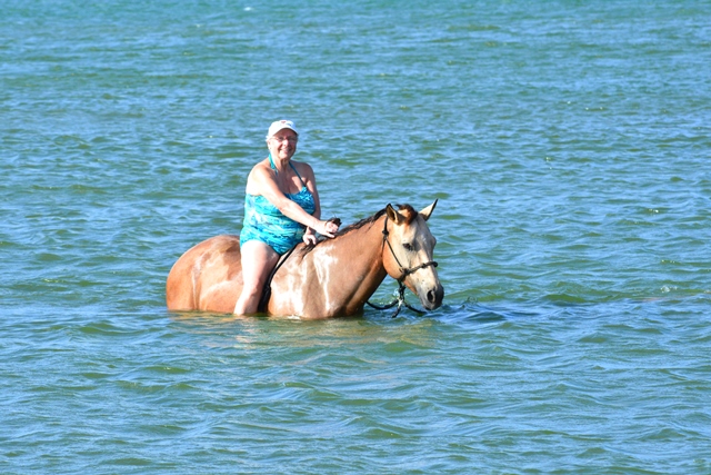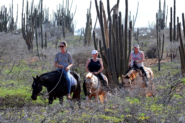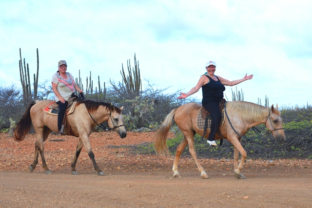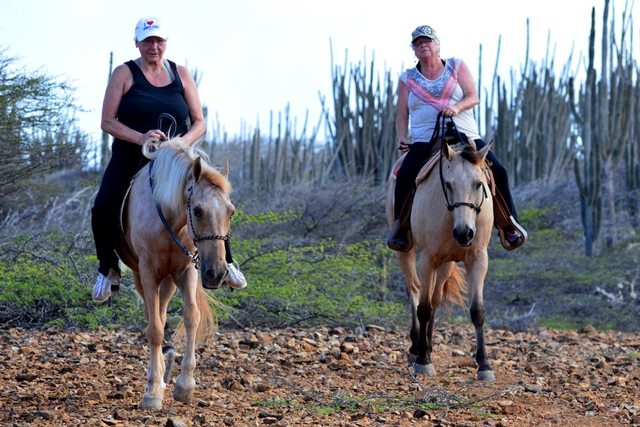 Last Wednesday we did a ride&swim tour with two Canadian sisters in their sixties! It was very special, because the lady on Blondy had never ridden before and for the lady on Poco it also had been a long time ago. We rode the Red Hill Hiking Trail to Lagoon, for the swim we took Poco in the water and we rode back taking the gorgeous shore to Boca Washikemba. All our trail horses are ridden with just a rope halter instead of bit/hackamore, so the horses enjoy and relax as well! Enjoy the pictures!