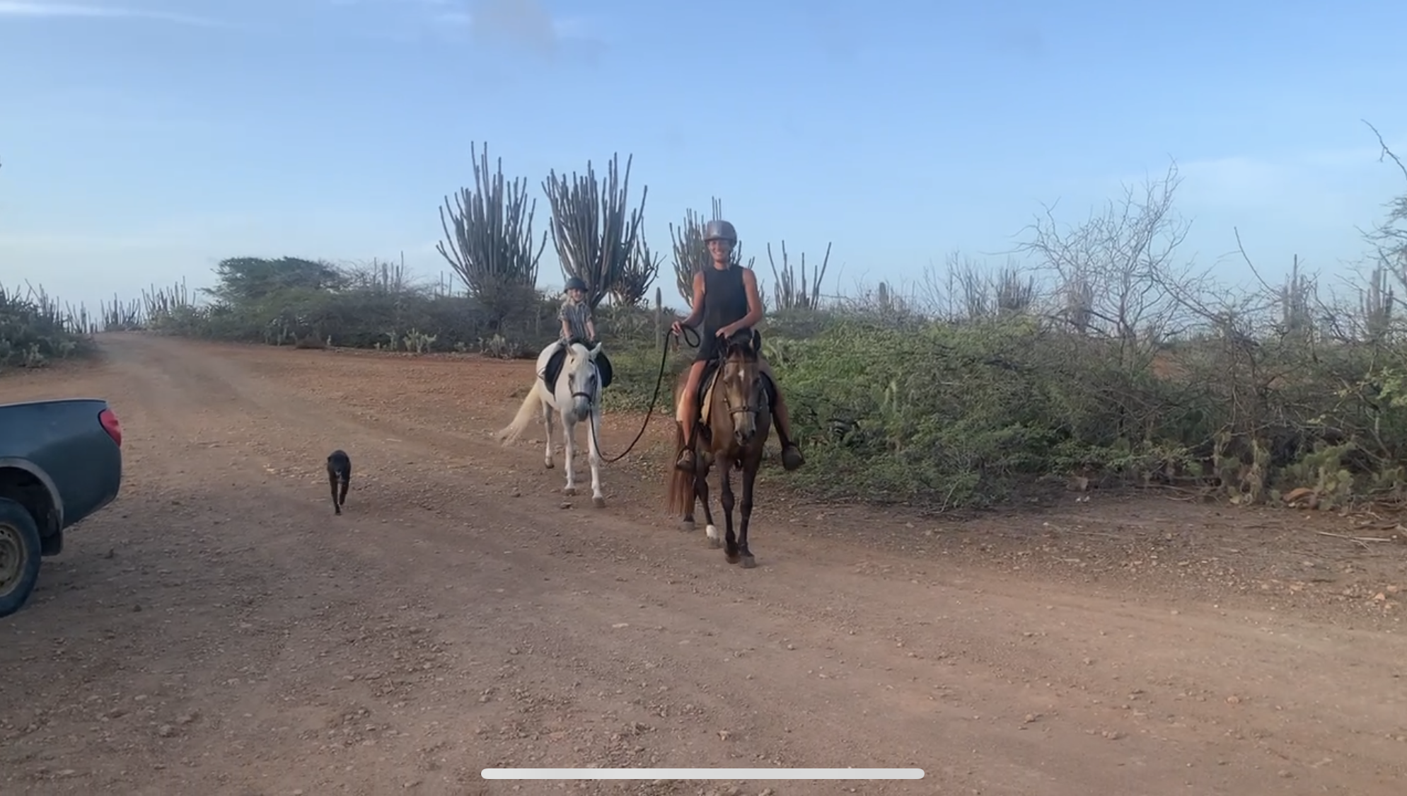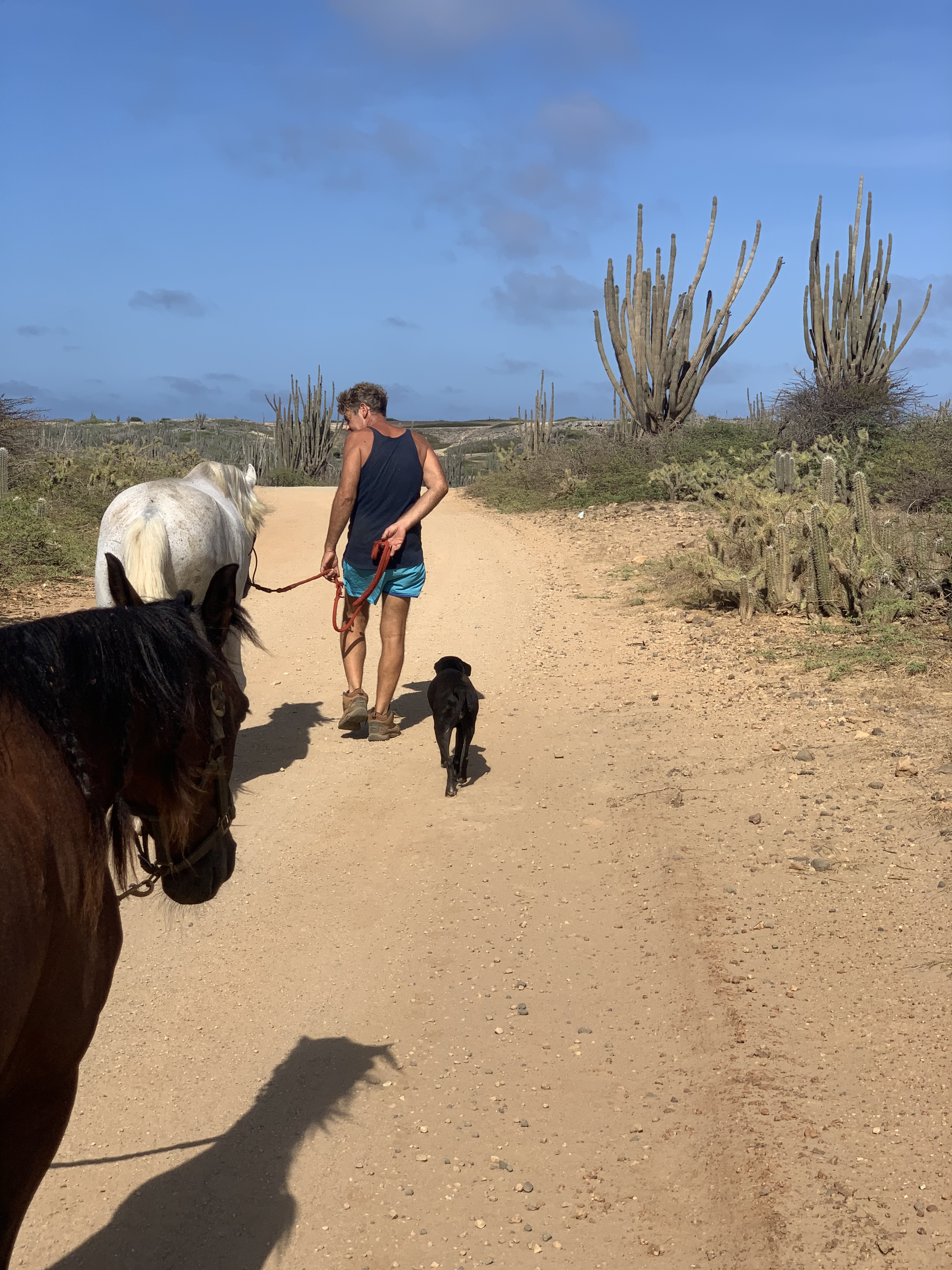 Apart from our horses and dogs, we are a family of three; Barend, Irene and our daughter Ella. Together we run our little ranch. Barend is the ‘fix-it-all’ and does all the daily chores such as feeding and mucking out. Irene does the trail rides, the riding lessons and trims the horses by herself. Ella keeps everybody sane and makes sure we’ll take an afternoon off every now and then to enjoy our beautiful island!